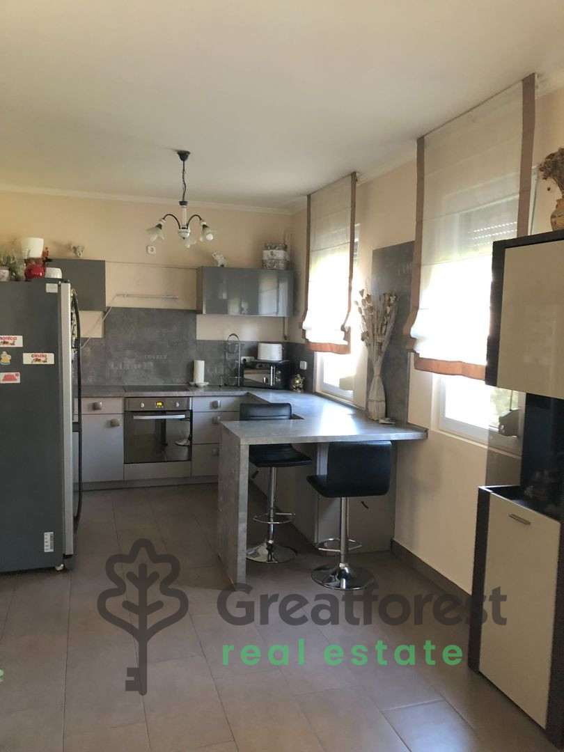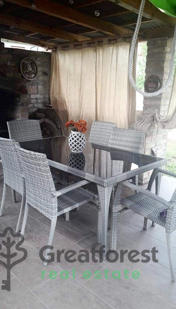 - front electric gate, garage, storage room, grill terrace, and drilled as well. The house area is 150 m2, and the associated plot area is 520 m2. The property consists of 7 rooms, a kitchen + dininghall, 2 bathrooms, and a guest toilet. The property's characteristics include: