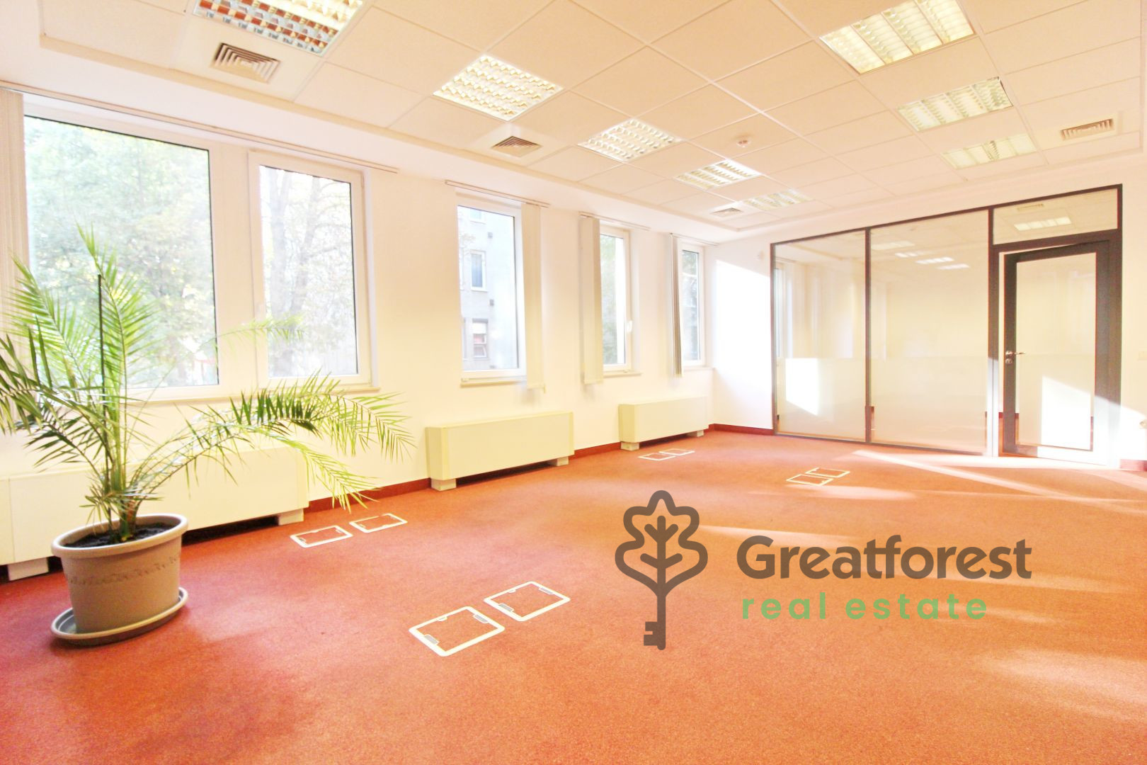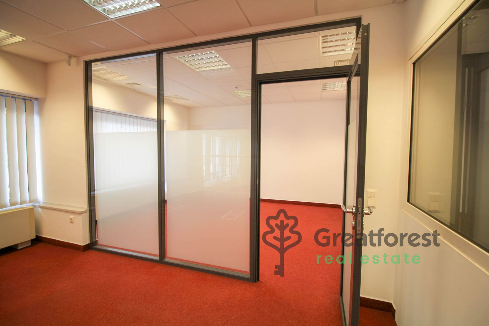 The office is located on the ground floor of a newly built apartment building. The metal doors and windows are fitted with 3 layers of glass and foil. The windows can be opened, but the building is also ventilated. The cooling
