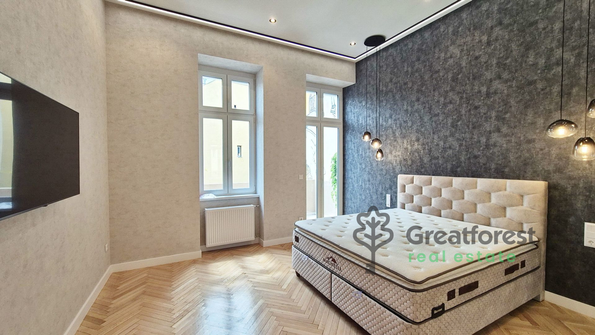 - 375,000 HUF/month Located on Kossuth Street in the heart of Debrecen, this 82 m² fully renovated apartment offers both space and elegance. With two large bedrooms and premium interior finishes, it’s ideal for students, young couples, or investors. Key Features: