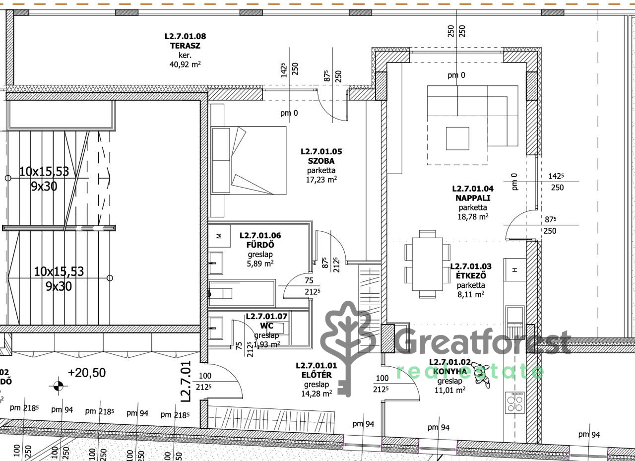 The apartment has a large living room + 1 bedroom layout, spacious, bright rooms, and a huge 20 m² terrace, which is a real rarity in the area.