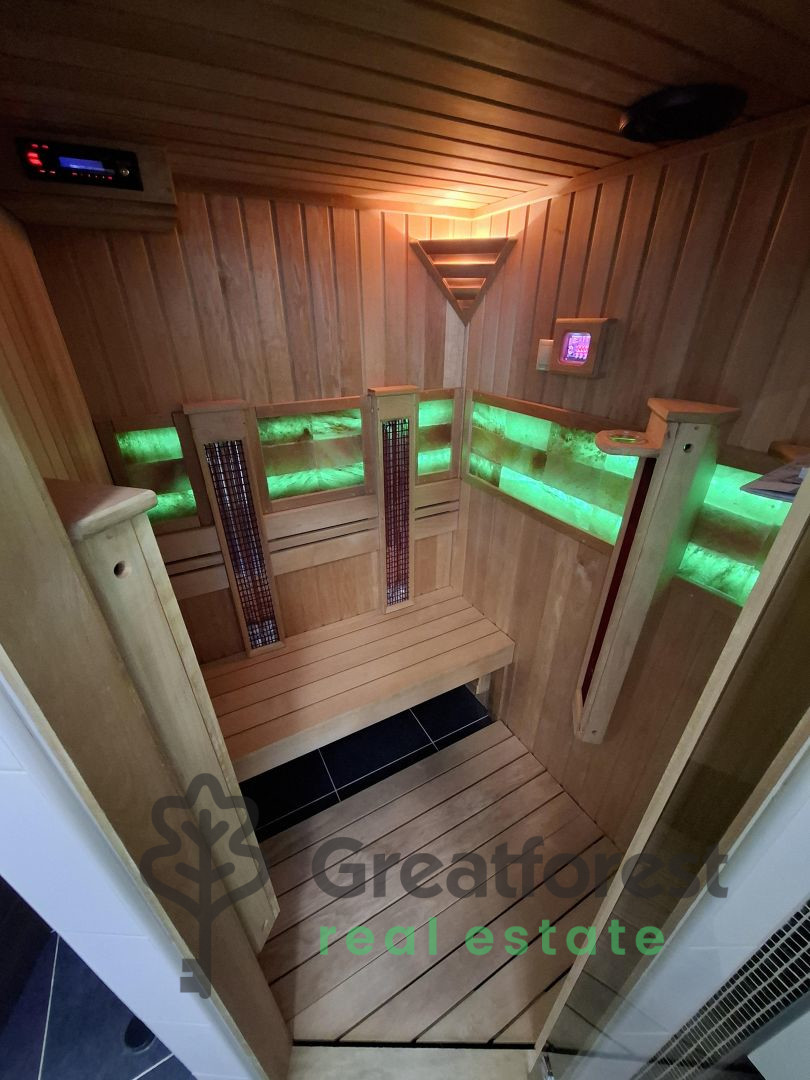 An infrared sauna provides wellness, and a 20m² guest room upstairs provides comfort. There is also an additional 40m² room upstairs, which now has a storage function, which can be converted into additional rooms.