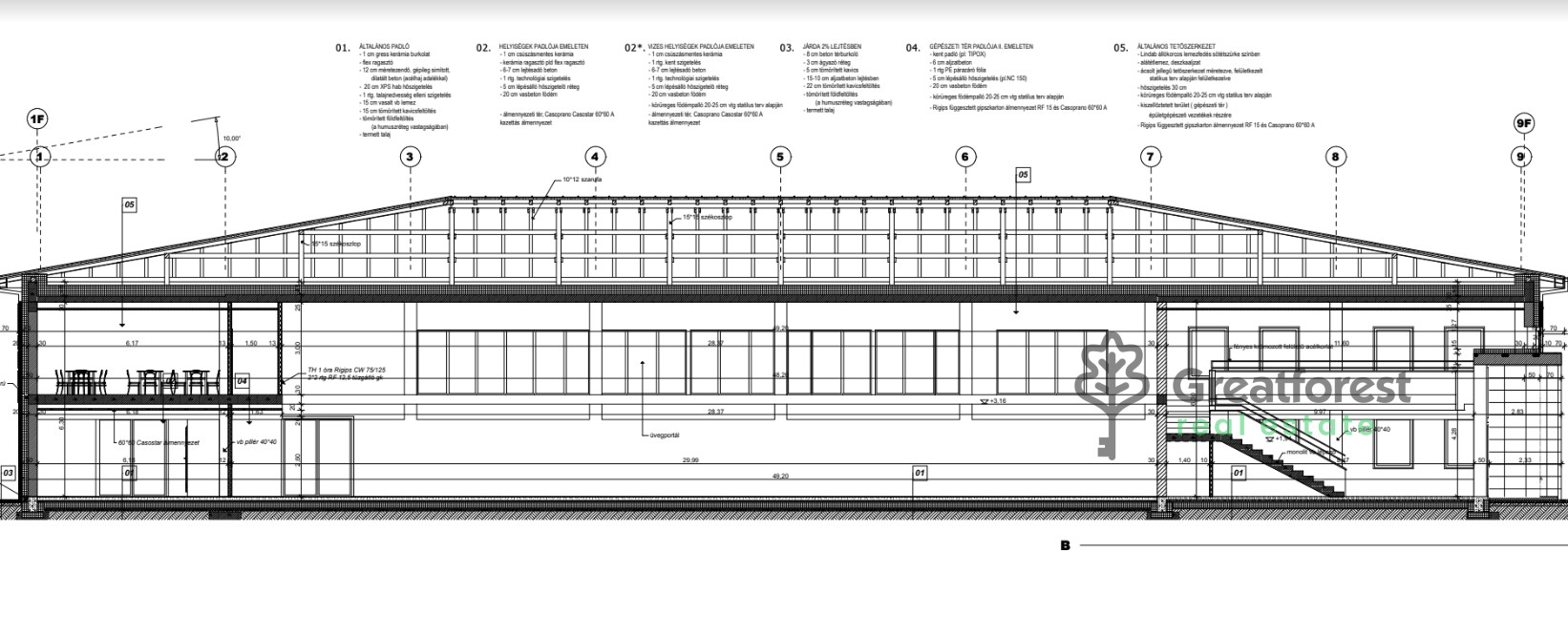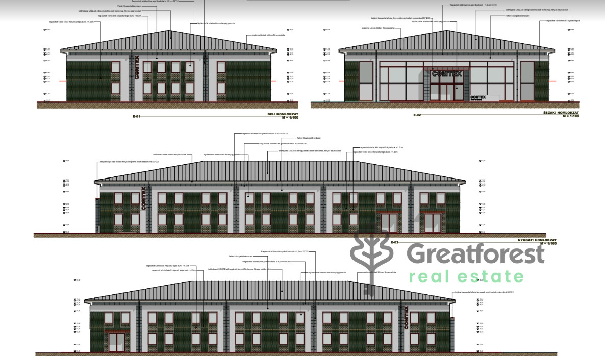 On a plot of 3050 m2 for sale 1.289.18 m2 and 846.34 m2 semi finished building, for sale in a business zone.