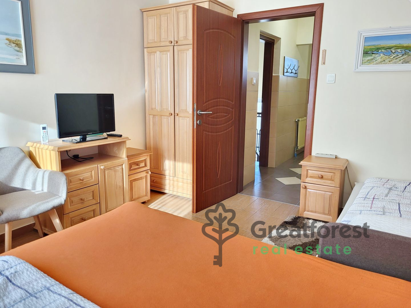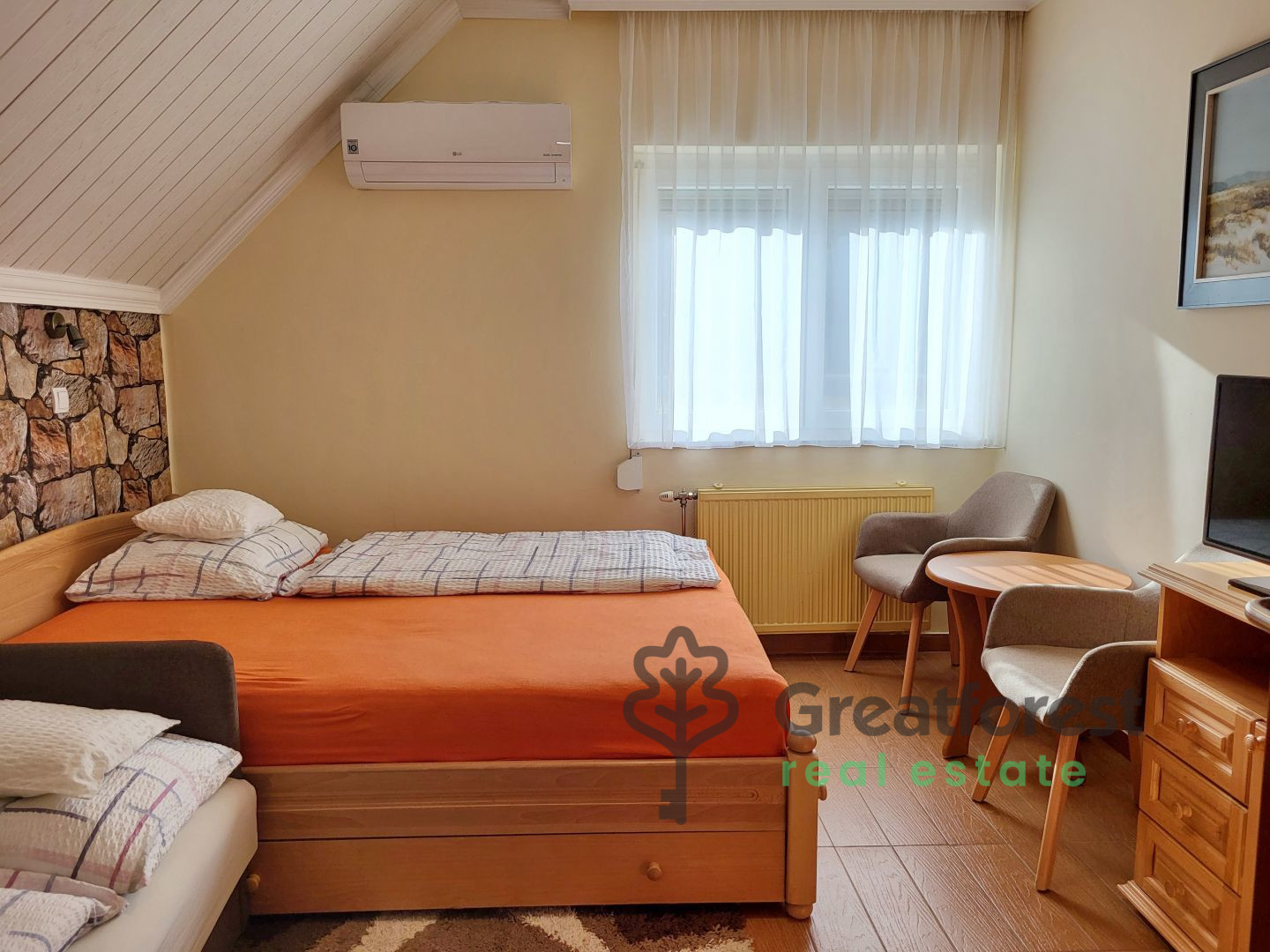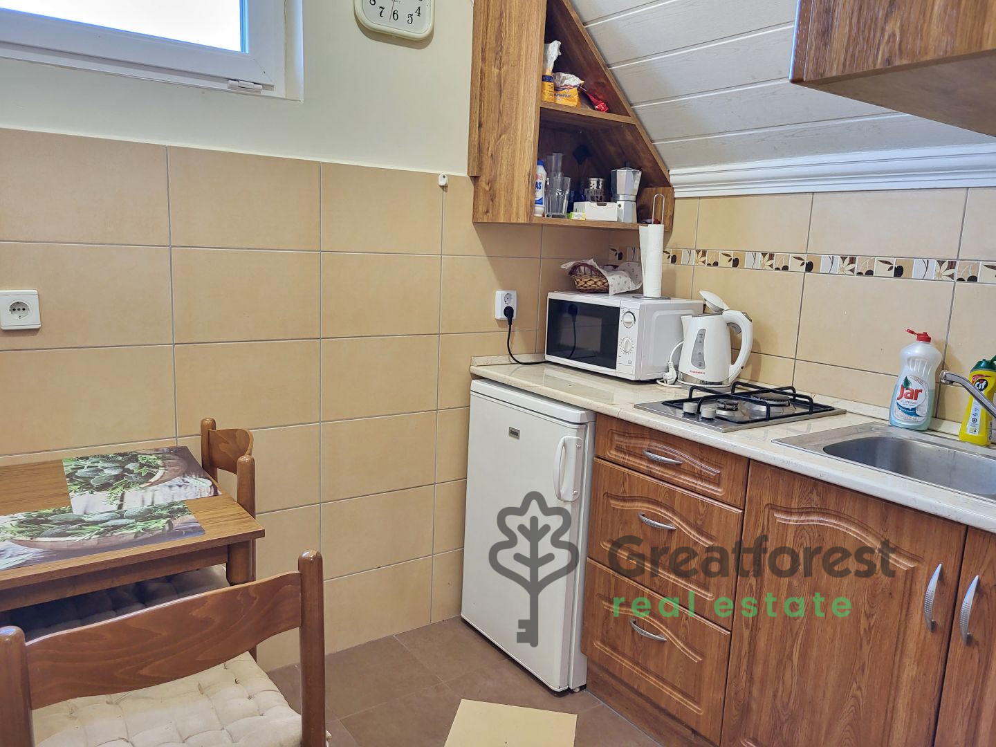 - Central gas boiler heating, hot water is provided by a gas boiler.