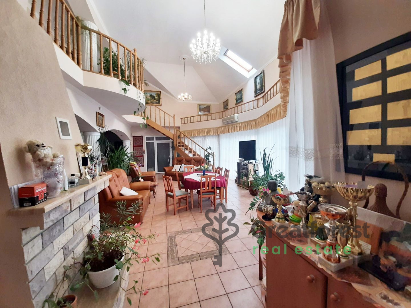 - style house covers an area of 250 sqm, where on the ground floor there is a living room, kitchen, pantry, dining room and 2 bedrooms, bathroom, 2 toilets, which is complemented by a SPACIOUS, 50 sqm terrace. On the upper floor there is a gallery, 2 bedrooms, bathroom, toilet, and a 70 sqm, built