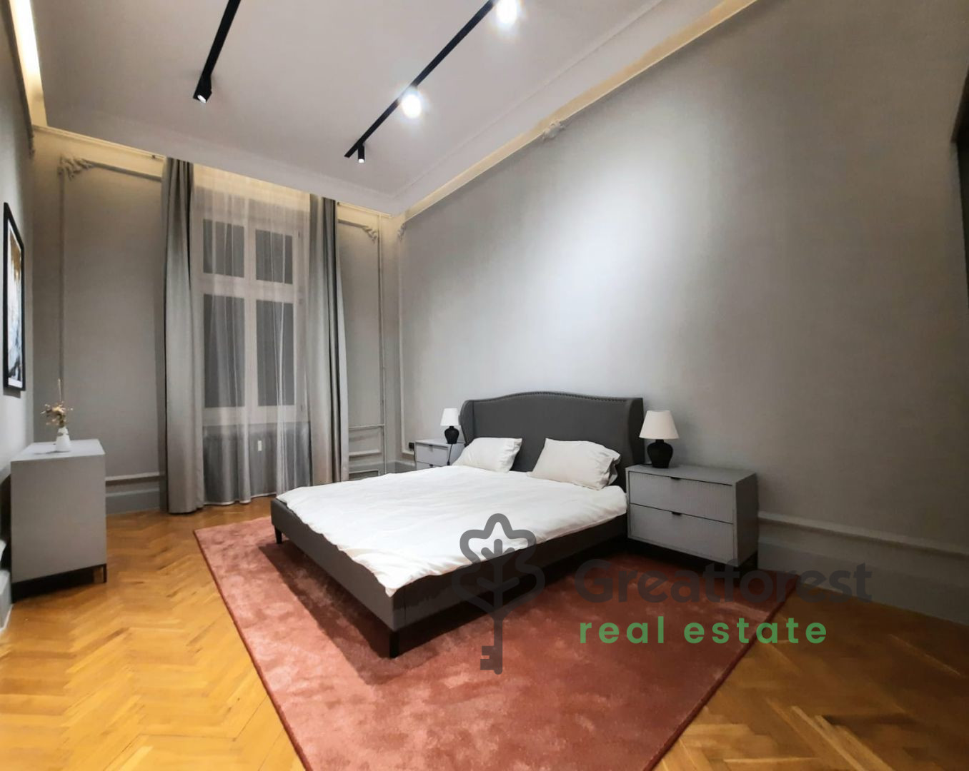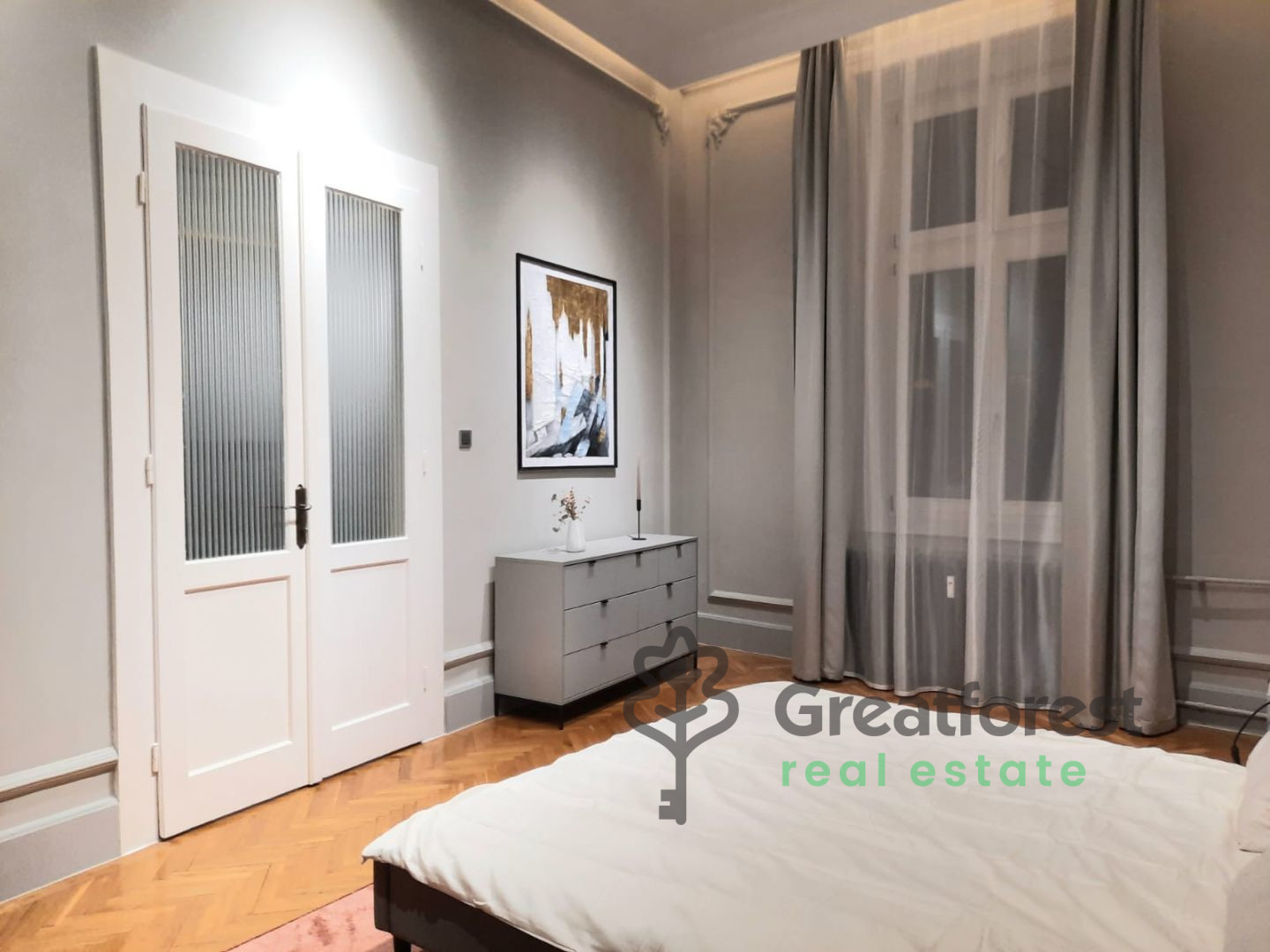 - bedroom ( the other bedroom is currently reorganized as a work/study room, but can be changed into a bedroom if required), large living room, dining room, bourgeois apartment for rent. The luxurious property has been completely renovated, with new and modernized bathrooms and a minimalist style fitted kitchen (dishwasher, fridge, induction hob, oven).