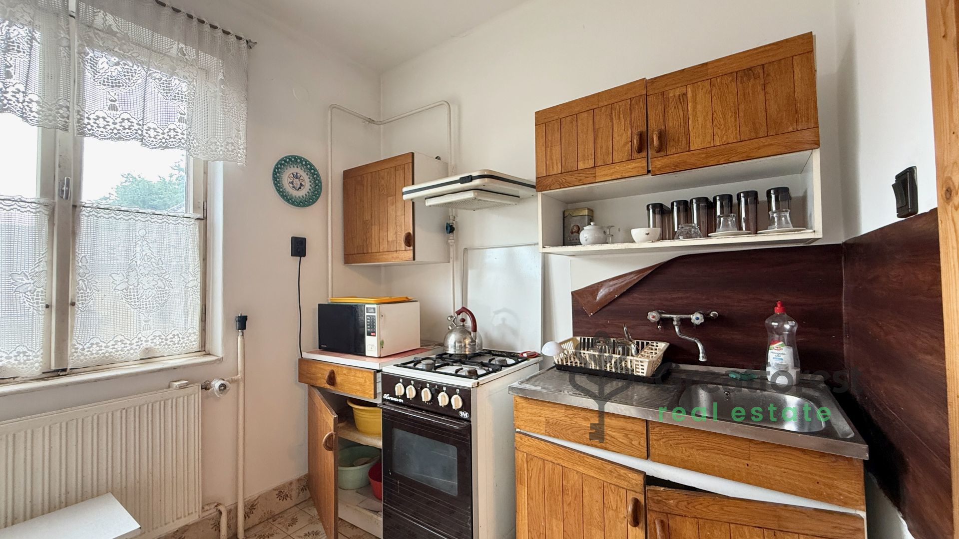 - Homokkert, in a quiet environment, on a 1100 sqm plot for sale a 260 sqm house built in 1988. The ground floor has 3 large rooms, dining room, kitchen with pantry, bathroom with separate toilet and a large balcony overlooking the street. Downstairs there are also 3 large rooms and a garage. The attic has not been built in but can be built on request. The plot and the property are excellent for a semi