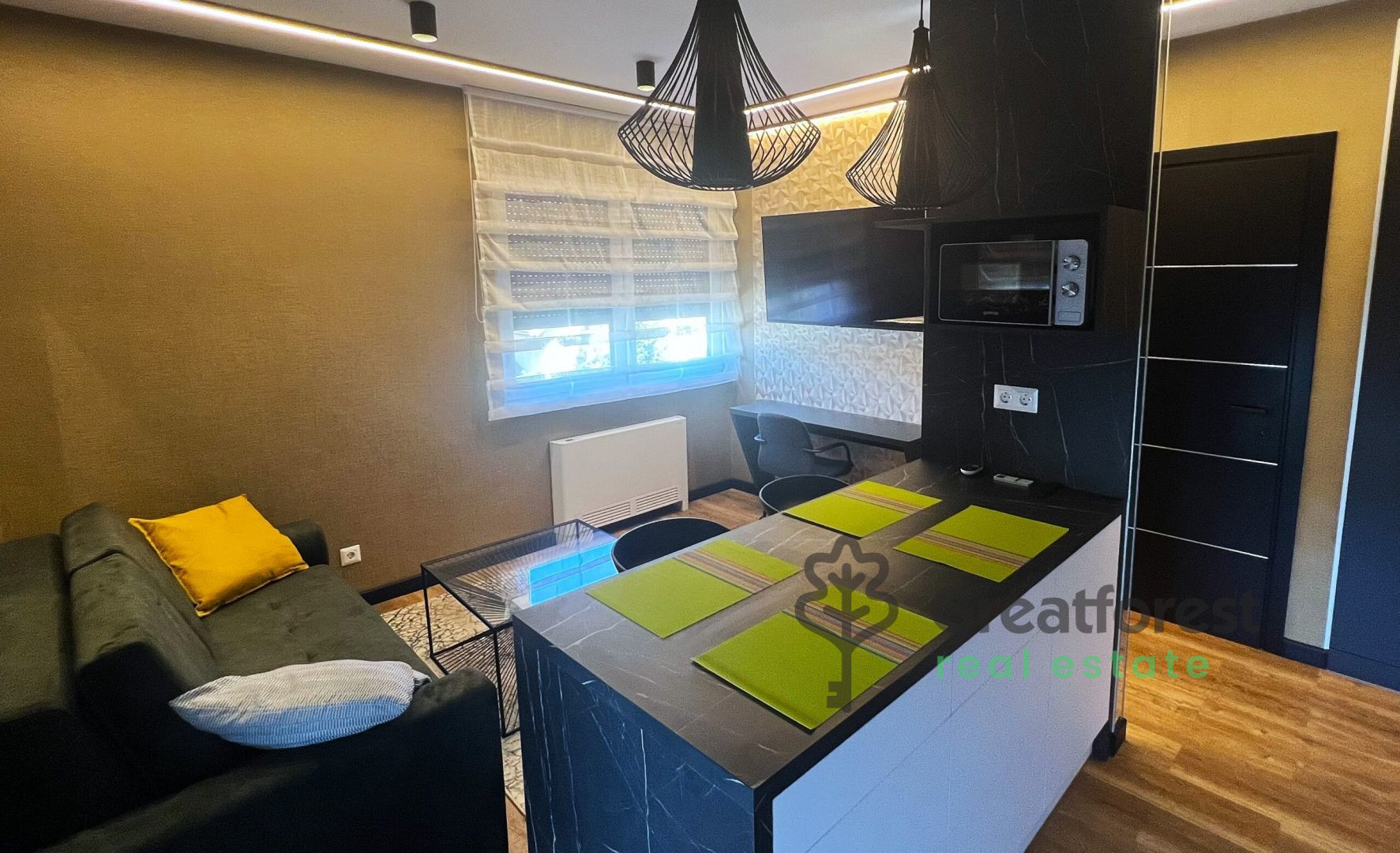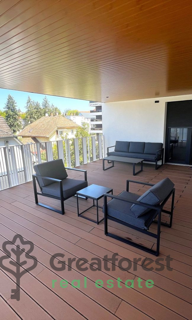 A newly built 35 m² brick property is available for rent in Debrecen, in Sestakert, in the immediate vicinity of the main building of the University. This luxuriously designed apartment with a 17 m² balcony is located in a newly built condominium with an elevator. It has 1 bedroom and a living room. The spacious balcony can also be used in summer, and the windows and doors are well insulated. The apartment has a practical layout, and its unique interior is comfortable and multifunctional. It has a fan coil system with individual heating and cooling controls. All important services are within a few minutes' walk: shops, restaurants, pharmacy, doctor's office, universities. Bus and tram connections provide quick access to the city center. The Nagyerdő forest and several leisure facilities are nearby. The M35 ramp is 10 minutes away, BMW 11 minutes, and the Déli industrial park 15 minutes. Available immediately, €922/month + 2 months' deposit required. Reference number: #123238