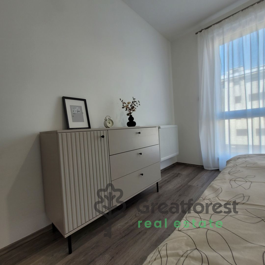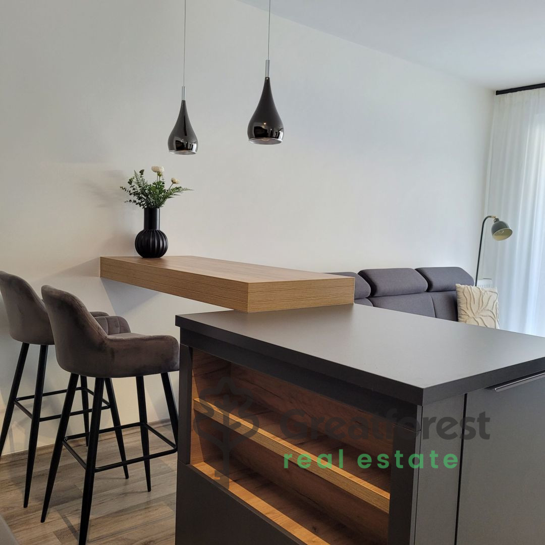 A 47 m2, 2 room apartment on the second floor of a condominium with an elevator, built a few years ago, is available for rent on a new street in downtown Debrecen. The property is bright, air
