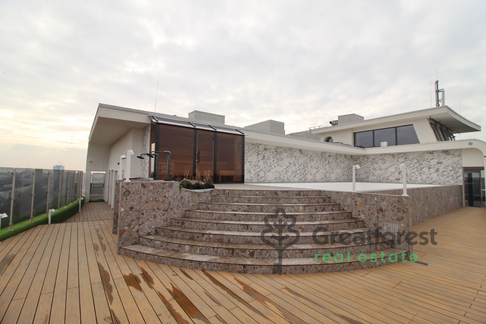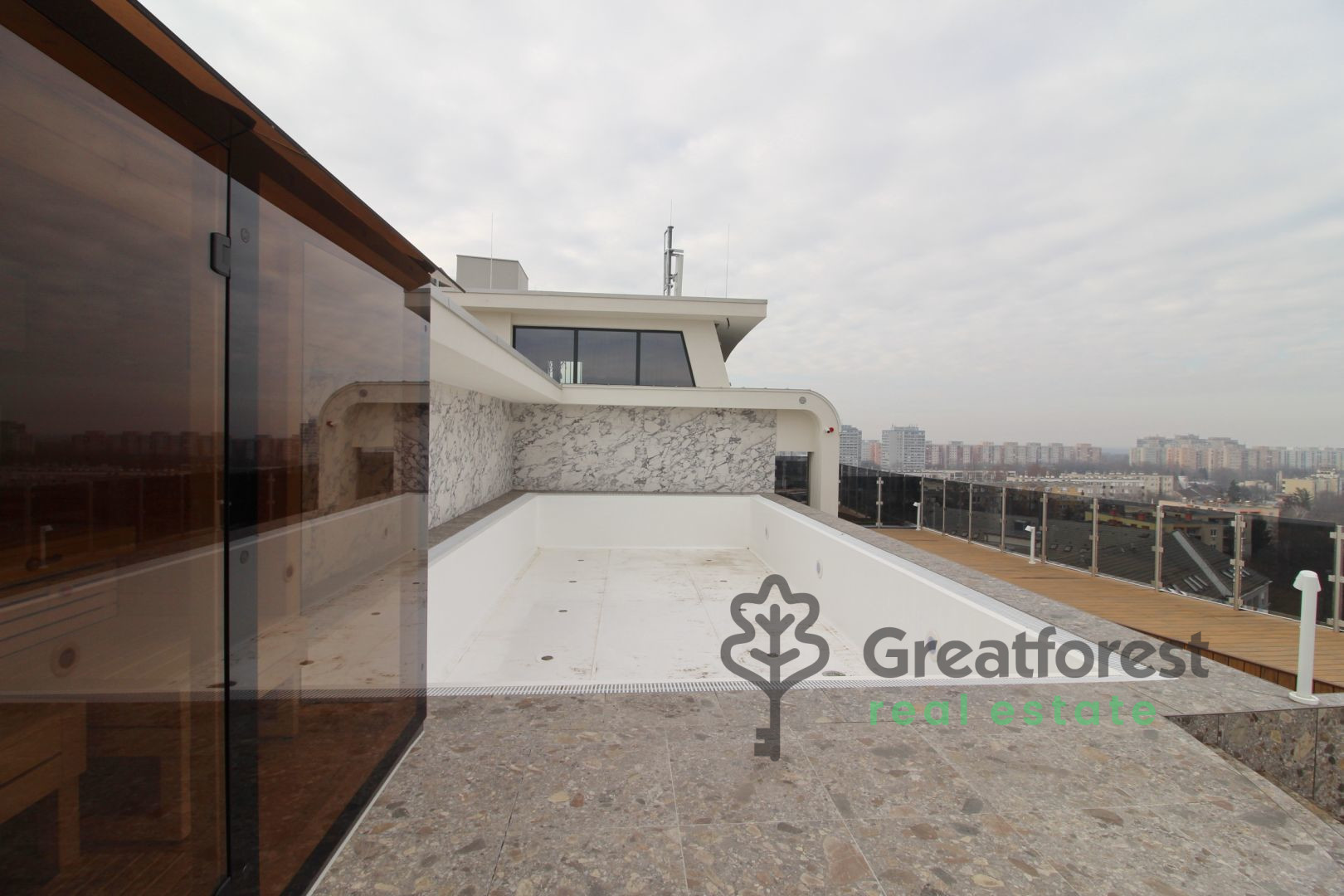 - there is a swimming pool, jacuzzi and sauna on the roof terrace