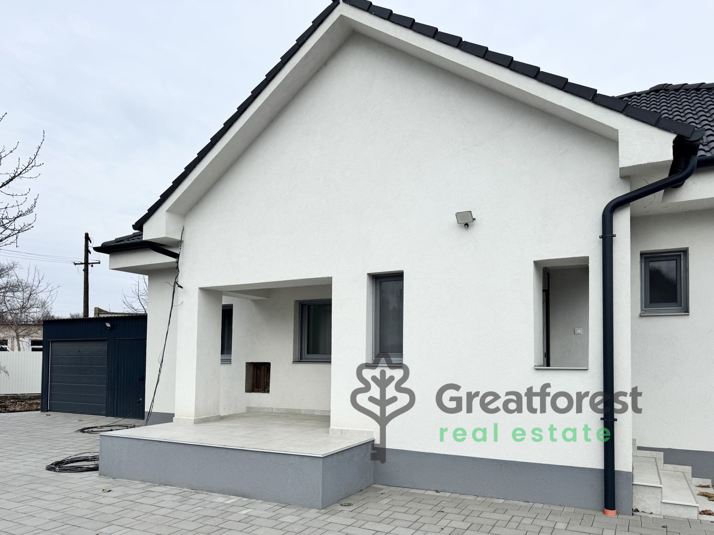- kitchen layout. The house also has a separate garage with storage space and a 10 m² covered terrace.