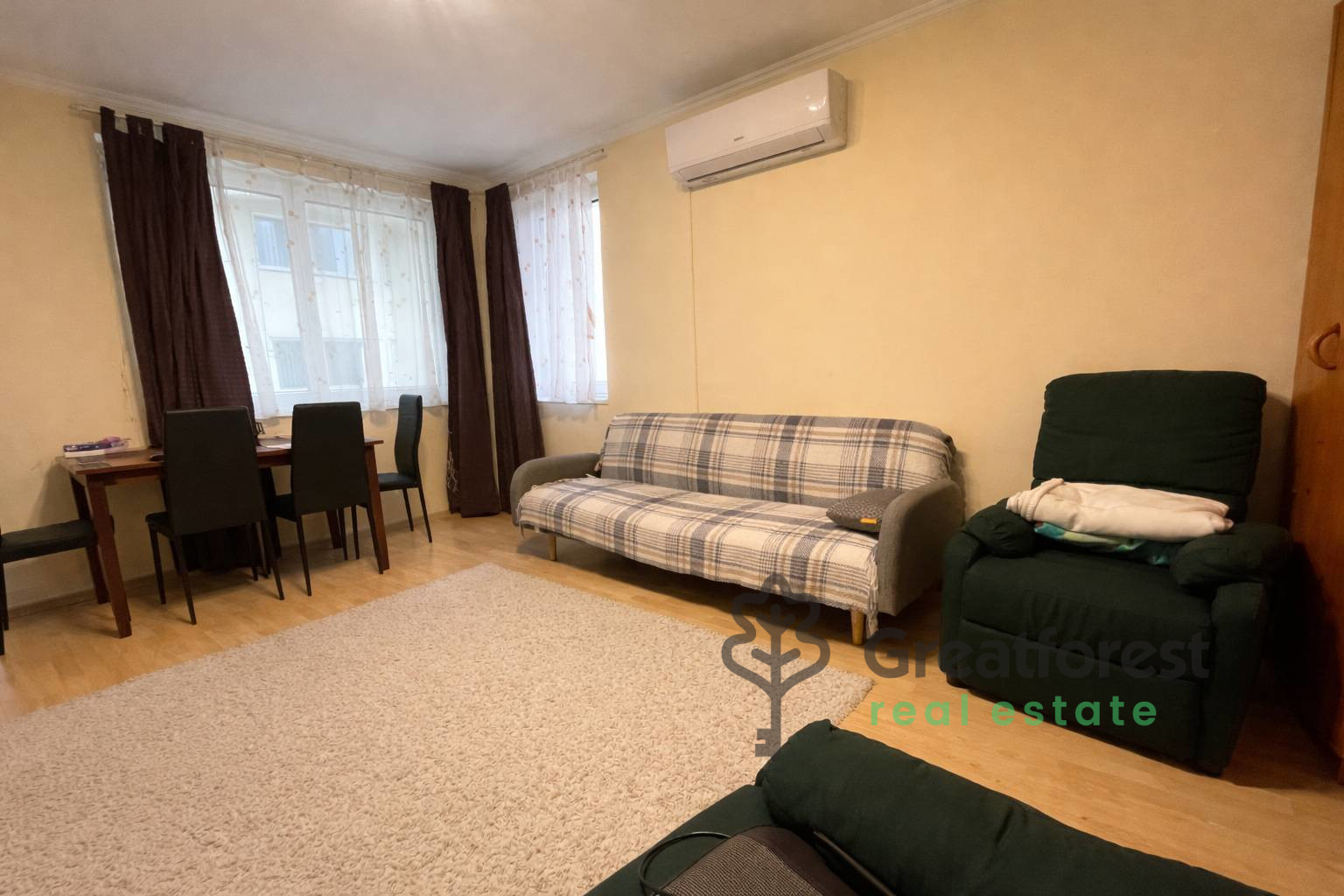 The apartment is equipped with underfloor heating, which provides a pleasant and even temperature, while air conditioning ensures comfort in summer. The plastic windows and doors provide excellent heat and sound insulation.