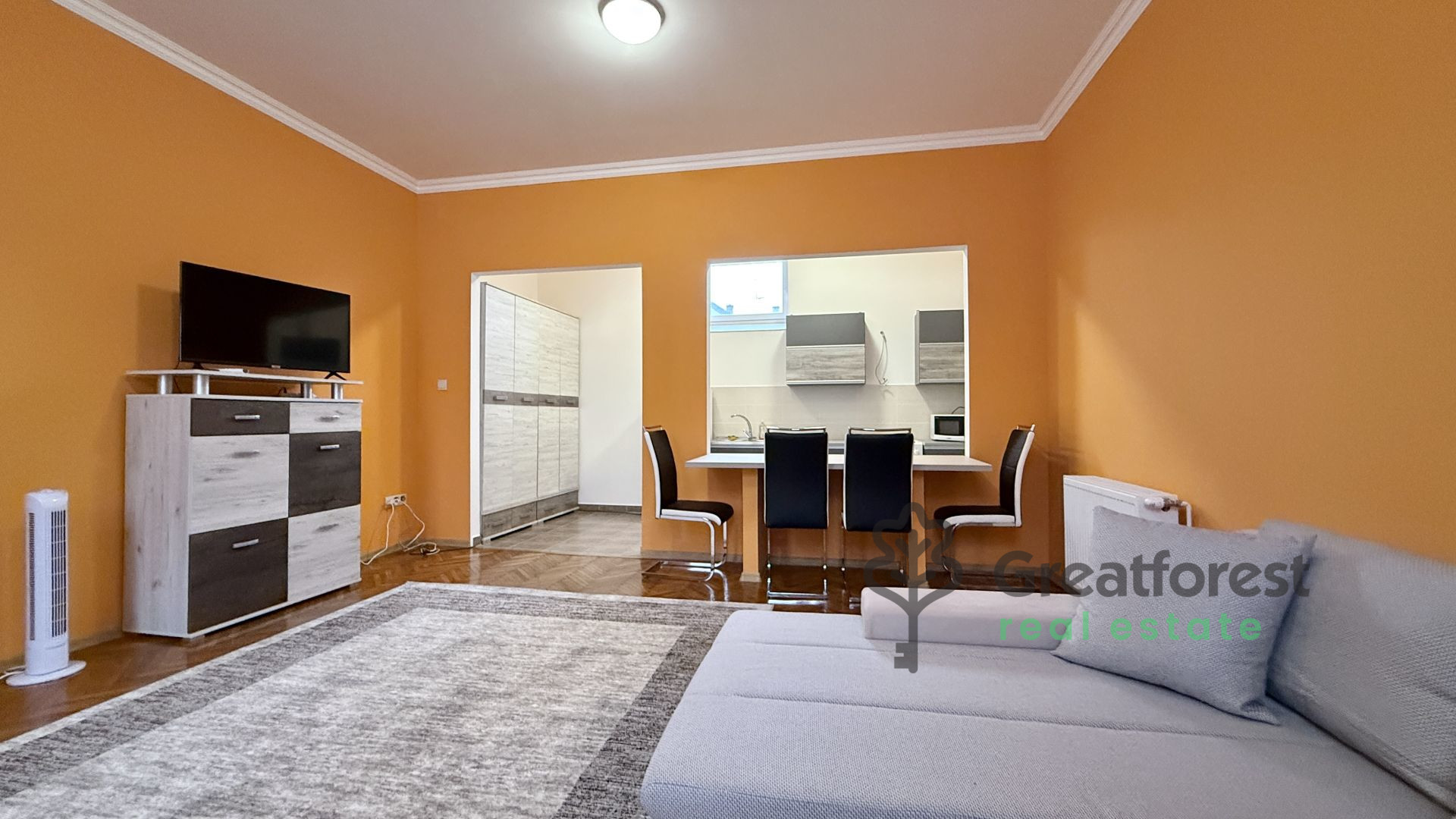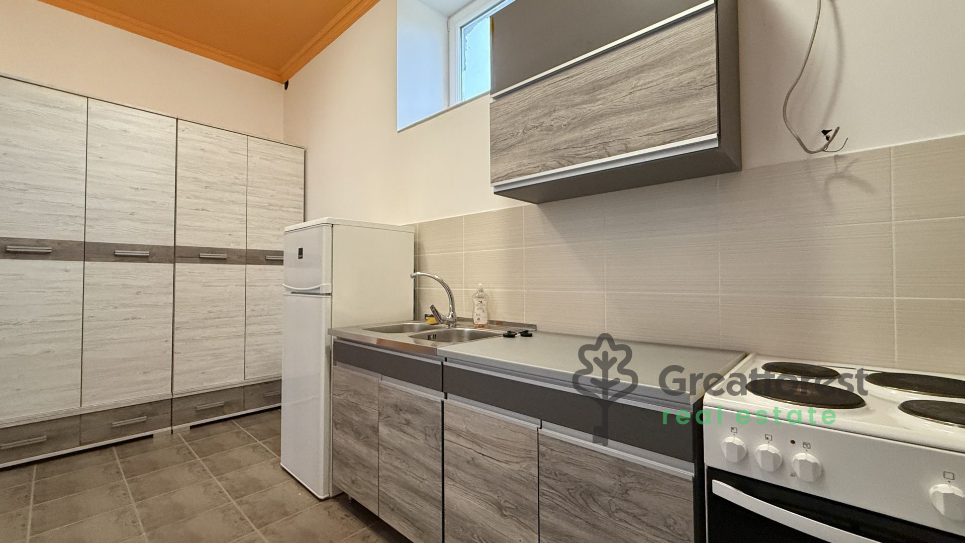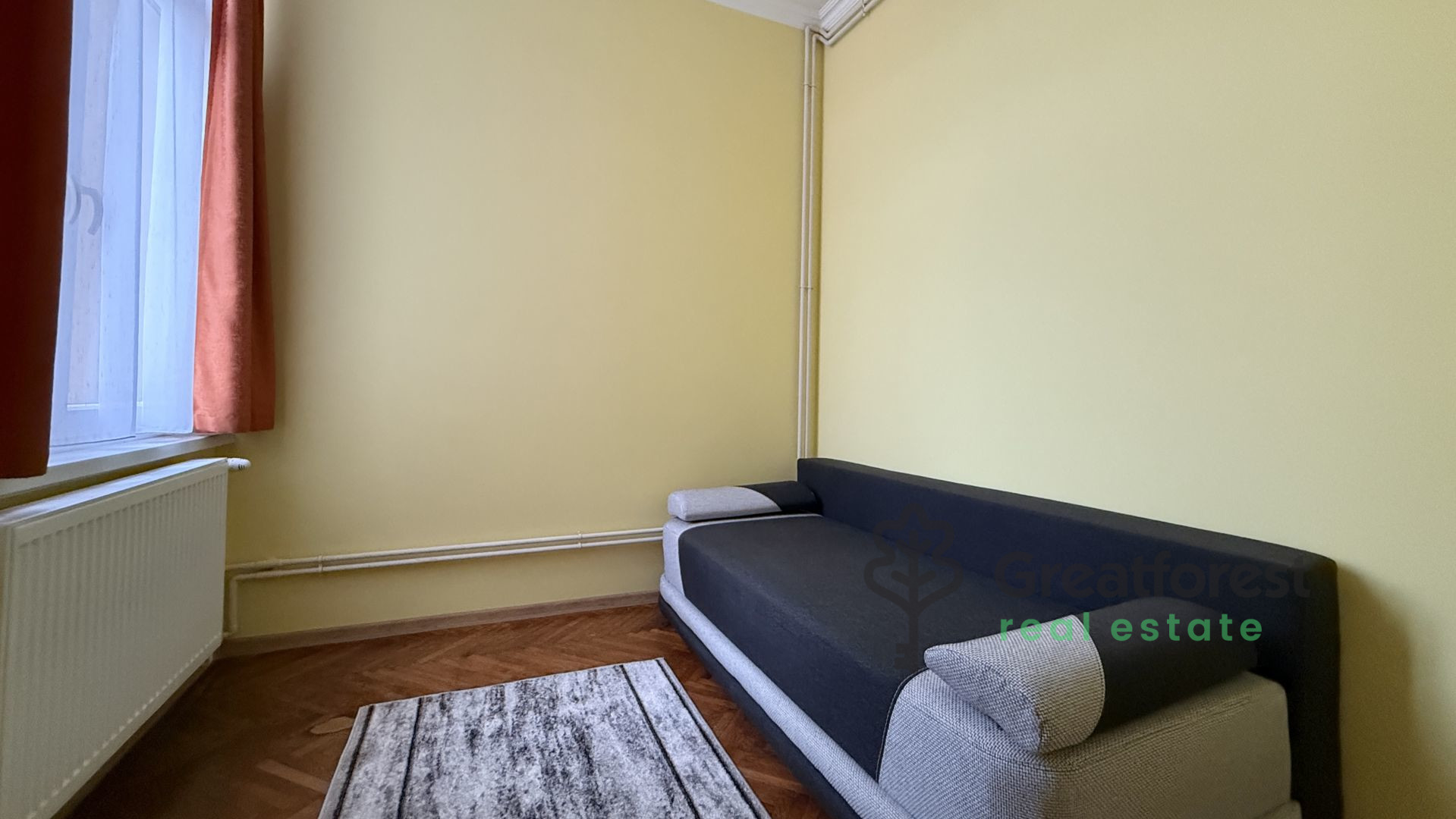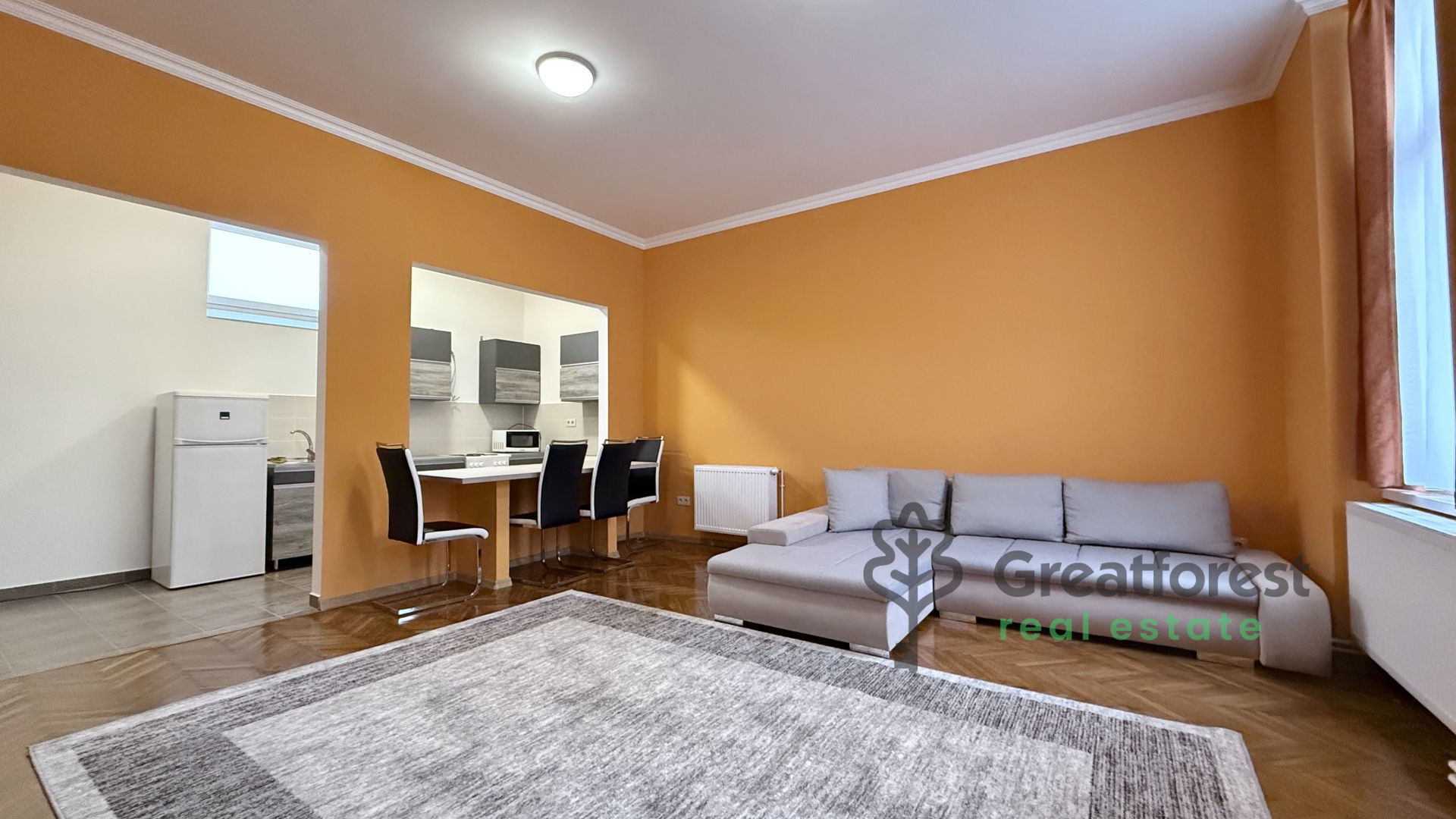 For rent in Debrecen city center, next to Fórum shopping center: a renovated 1 bedroom + living room brick apartment. Parking for 1 car in enclosed courtyard. Basement storage available on request. Available immediately; 2 months’ deposit required. Reference no.: #125403