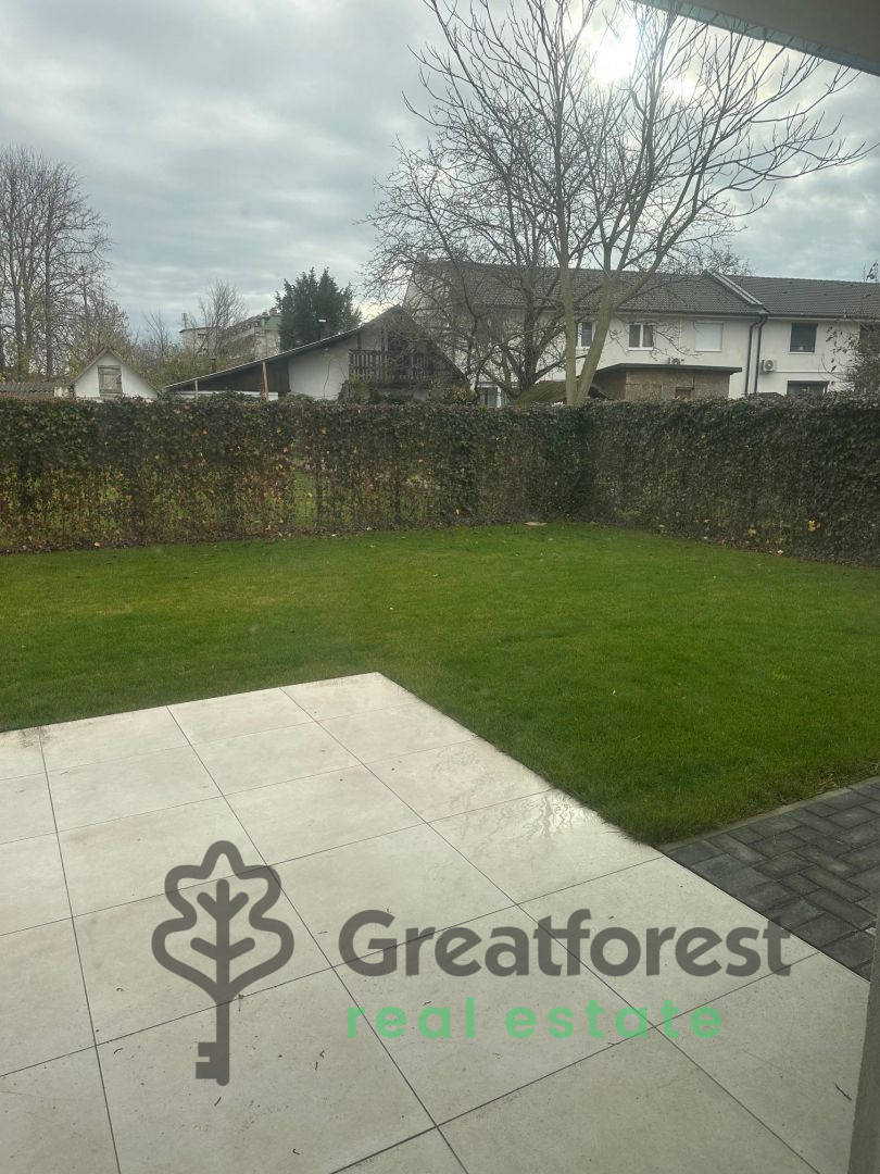 - story apartment close to the city center. On the lower floor there is a large, sunny living room with a kitchen and a dining room. From here you can open up to the private fenced 150 m2 landscaped garden with an irrigation system, and the huge terrace. The kitchen also has a pantry. There is a bathroom with a shower on the ground floor. Upstairs there are 3 rooms with balconies, a bathroom with a bathtub and a separate toilet. All rooms are equipped with air conditioning. The heating is provided by a central heat pump. The apartment has underfloor heating. Ground floor area: 45.88 m2 + 16.56 m2 terrace Upper floor area: 45.15 m2 + 11.4 m2 balcony Purchase price of the property: 135,000,000 HUF, which also includes the design of the kitchen furniture and the stair railing. The property includes a lockable 15.5 m2 garage, the purchase price of which is: 13,000,000.